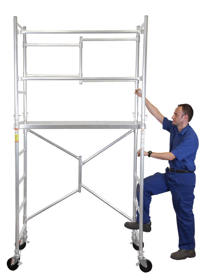 Andamios Móviles fabricados en aluminio, máxima ligereza y robustez. Capacidad de carga máxima de 250 Kg. Dispone de 4 ruedas giratorias con doble freno para una mayor portabilidad y seguridad. Plataformas antideslizantes regulable a diferentes alturas. Incluye barandilla de seguridad. No requieren de herramientas para su montaje. Plegables.