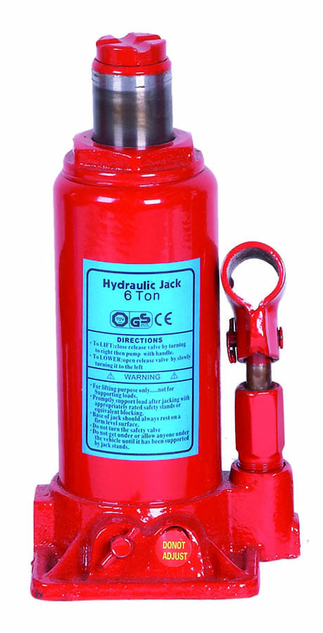 Los gatos hidráulicos de botella con capacidad de carga de 6 toneladas. Dispositivo de subida y válvula de seguridad en bajada y tornillo de regulación.