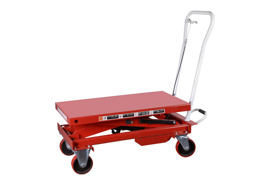 Mesa Elevadora de tijera. Diseñada para la elevación y tranlación de objetos y maquinaria industrial. Capacidad de carga de 500 Kg. Sistema hidráulico de máxima fiabilidad. Nuevo diseño adaptado a la normativa europea EN 1570:1599. Sistema de descenso controlado y válvula de seguridad por sobrecarga. Dos ruedas giratorias con freno y dos fijas protegidas para evitar accidentes.